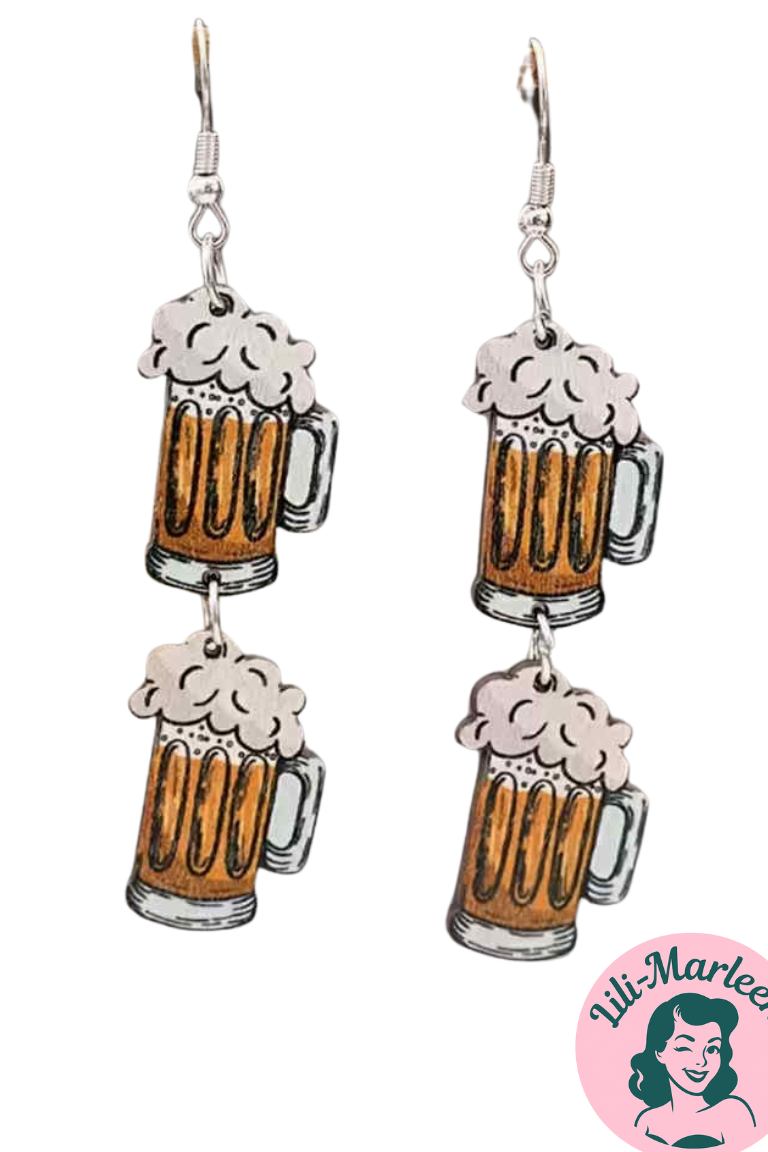 Gør dig klar til oktoberfest eller en festlig aften med disse sjove og iøjnefaldende ølkrus-øreringe! De er lavet i let træ, så de ikke tynger øret, og giver et cool, humoristisk og festligt udtryk. Perfekte til både temafester, festivaler og når du vil have lidt ekstra glimt i øret.