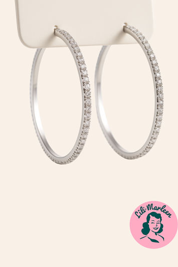 Miss Stardust er klassikeren, der altid stråler. Disse store hoops er pyntet hele vejen rundt med små glimtende sten, som fanger lyset fra alle vinkler. Med deres rene, sølvfarvede look og glitrende elegance passer de perfekt til både hverdag og fest – og til dig, der elsker at skinne uden at råbe.