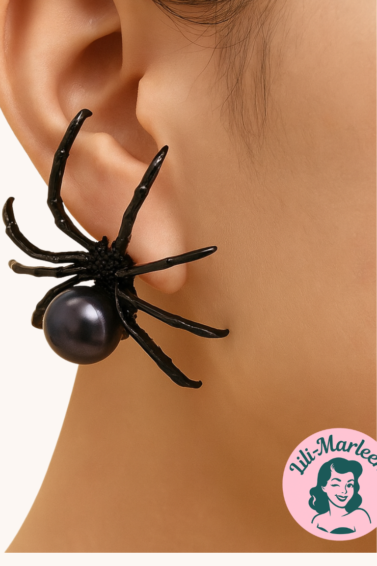 Hashtags: #BlackWidowEarring #StatementJewelry #HalloweenStyle #LiliMarleen