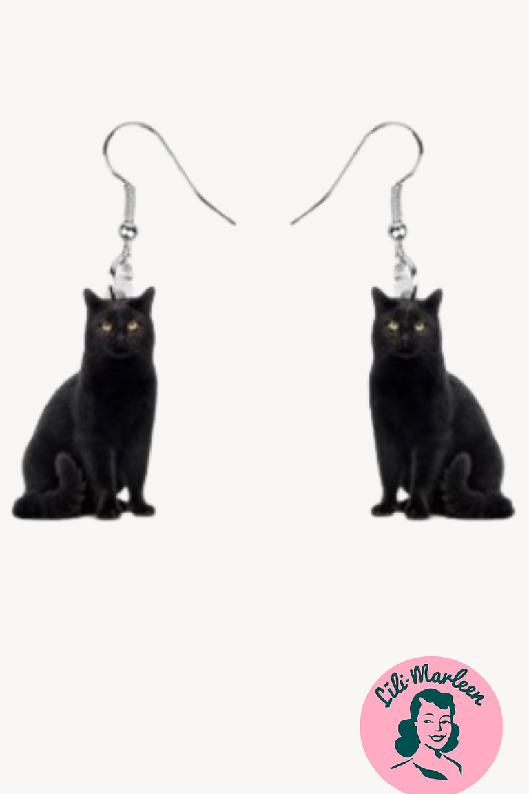 Mystiske katte-øreringe i akryl – sort magi og charmerende blik
