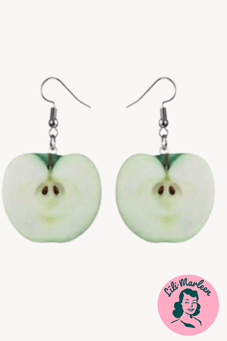 For dig, der tør lidt mere og elsker accessories med sprød kant og humor. Disse store acryl-øreringe med grønne æble-skiver er lige så friske som en bid i et saftigt Granny Smith – og giver dit outfit et skønt tvist af farver, frugt og finurlighed. Præcis som vi elsker det hos Lili-Marleen.