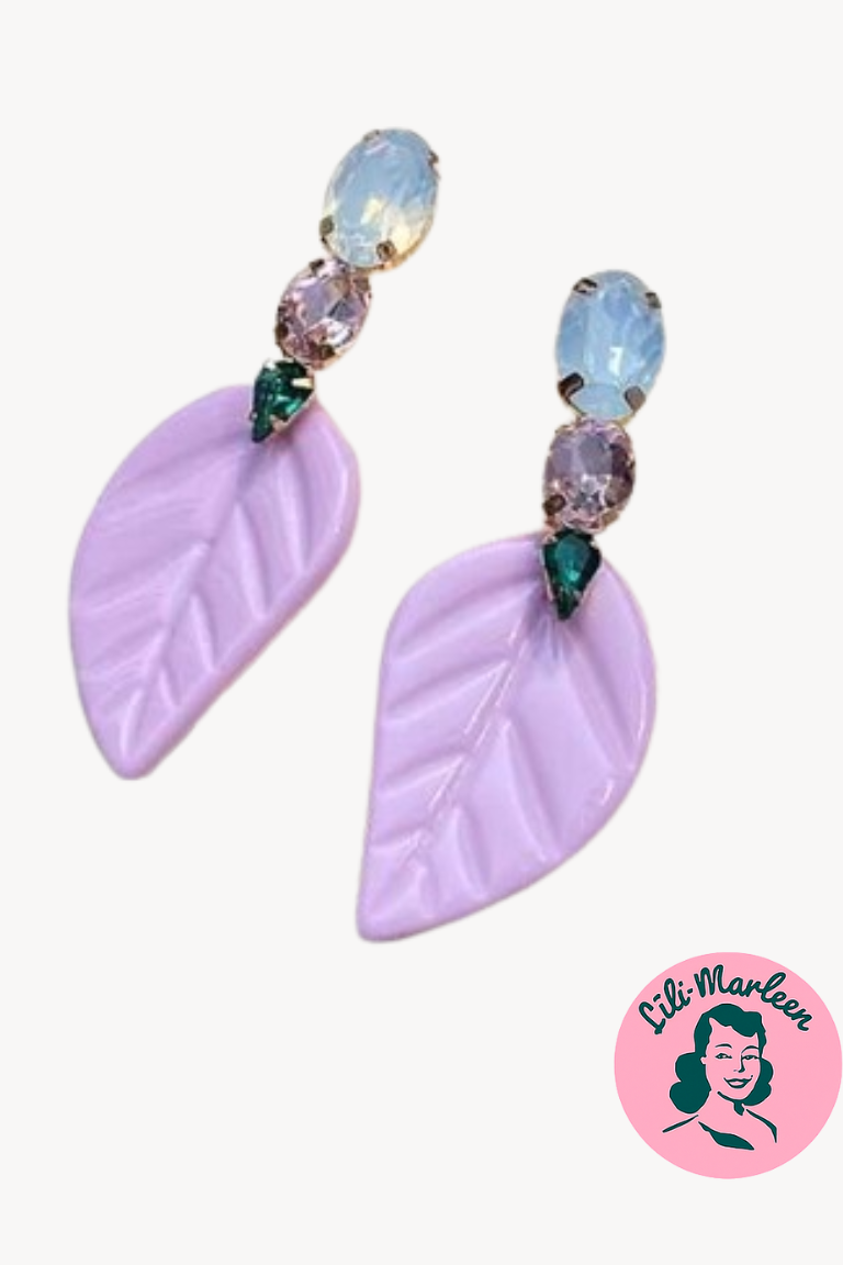 Miss Lilac Leaf – Øreringe med Lilla Blad og Krystalglimt