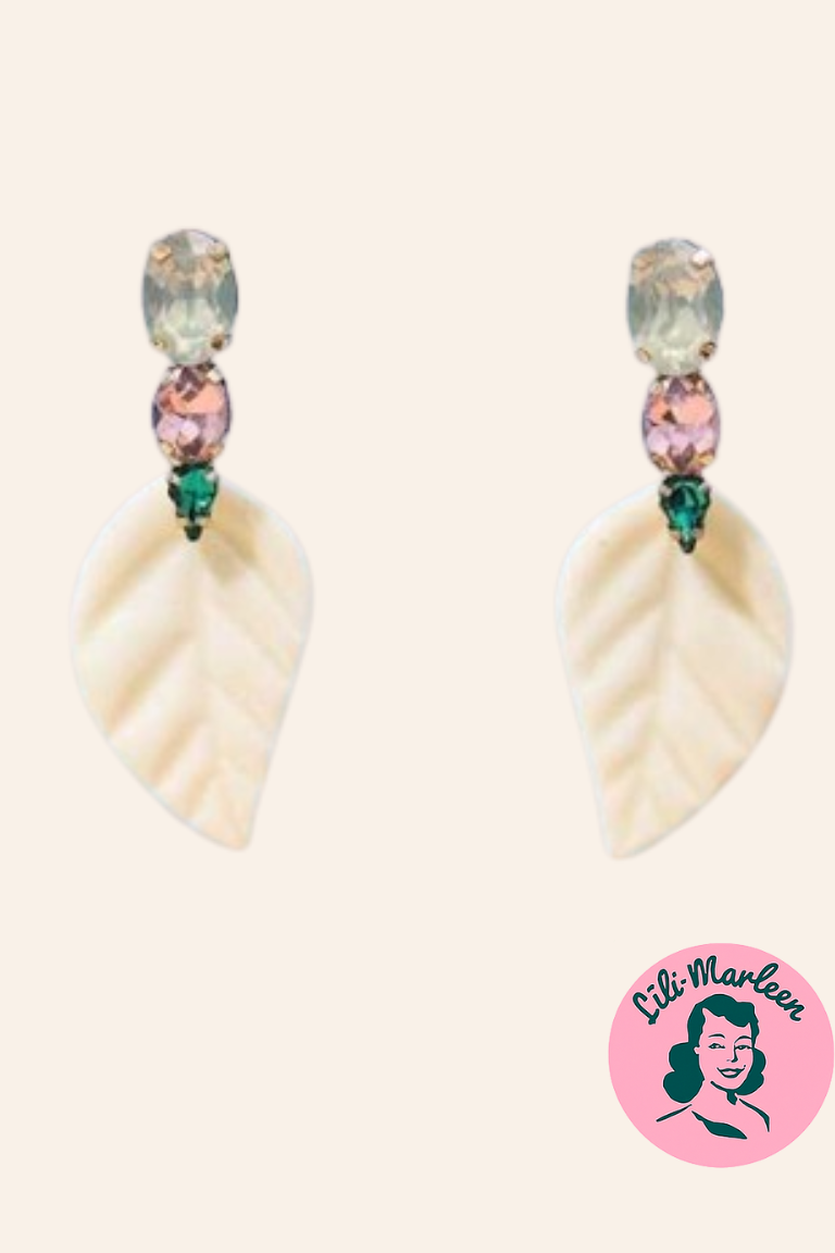 #MissIvoryBreeze #Elfenbensøreringe #PastelSten #LetØreringe #RomantiskeSmykker #LiliMarleenStyle #VintageBladDesign #SommerSmykker