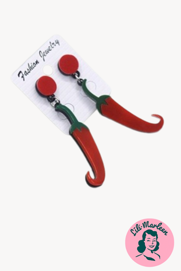 For dig, der elsker at skrue op for varmen – både i livet og i dine accessories. Disse frække acryl øreringe formet som røde chilier er et farverigt og sjovt statement, der viser, at du bestemt ikke er bange for at krydre hverdagen. Perfekte til en legende Lili-Marleen-stil!