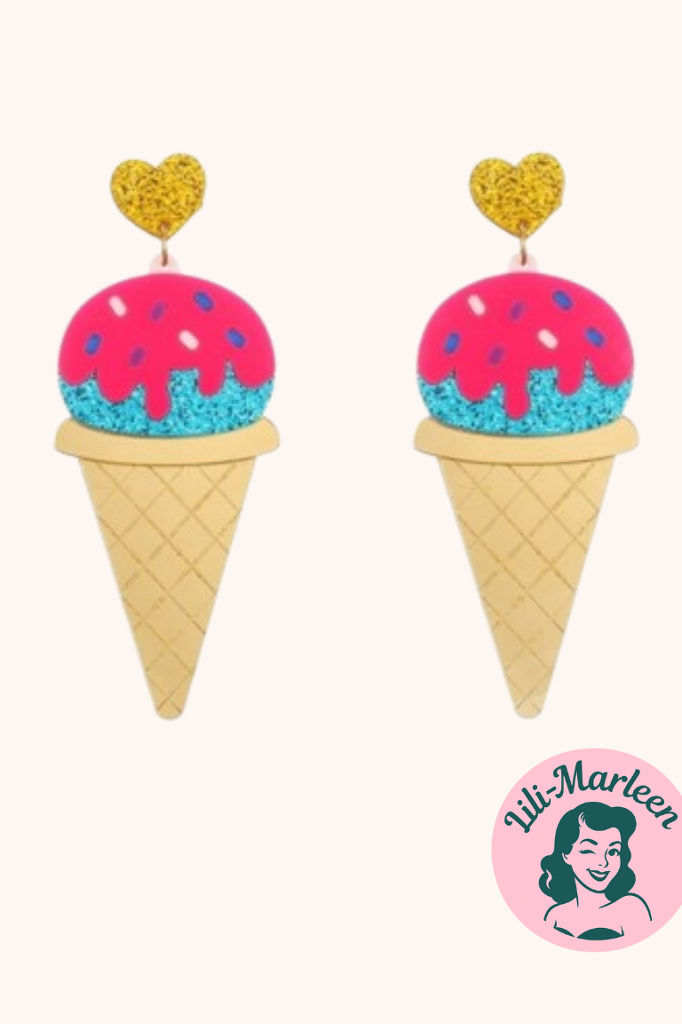 Øreringe - store sjove øreringe, isvaffel (guld/pink/blå)