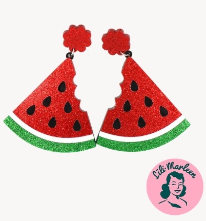 Miss Watermelon – Store Vandmelon-Øreringe med Glitter