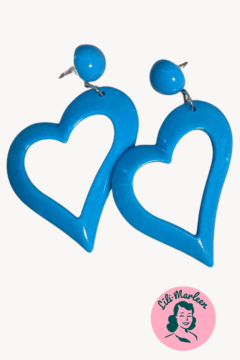 Vilde Hjerter – Blå hjerteøreringe i retro plastik