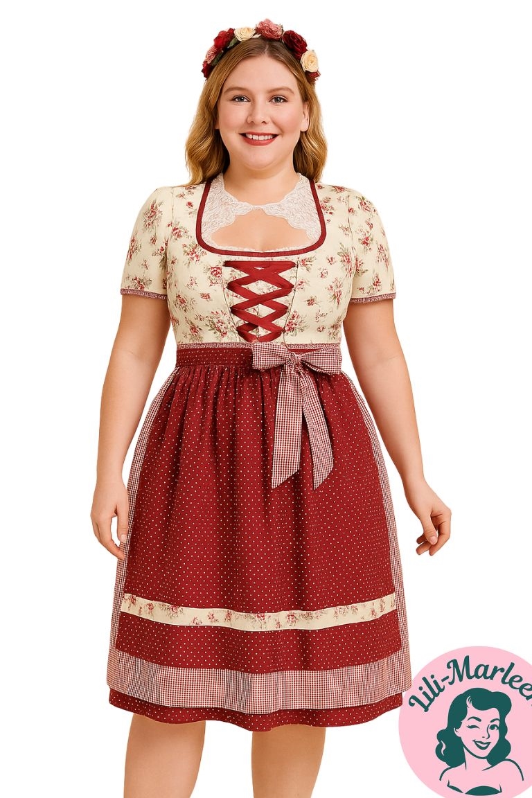 Gør dig klar til efterårets fester med den sødeste oktoberkjole i røde og hvide farver! Denne skønne kjole kombinerer romantiske blomsterprint med et smukt corsagedesign og et elegant blonde-forstykke, der sidder perfekt. Perfekt til enhver efterårsfest!