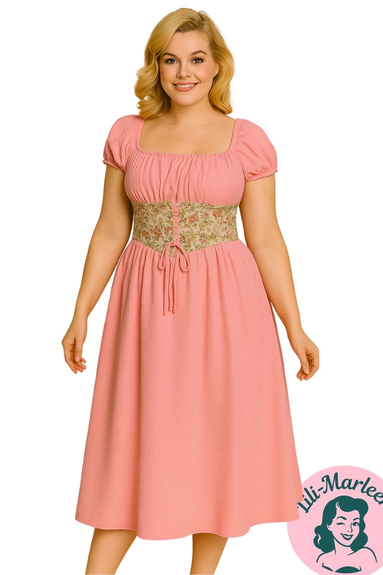 En smuk og alsidig lyserød kjole, perfekt som base til dit Oktoberfest-look! Kombinér den med forklæde og tilbehør for at skabe dit helt eget unikke outfit. Med elastik i ryggen og et let strækbart materiale, er denne kjole både stilfuld og komfortabel. Perfekt til både festlige anledninger og som en elegant hverdagskjole!