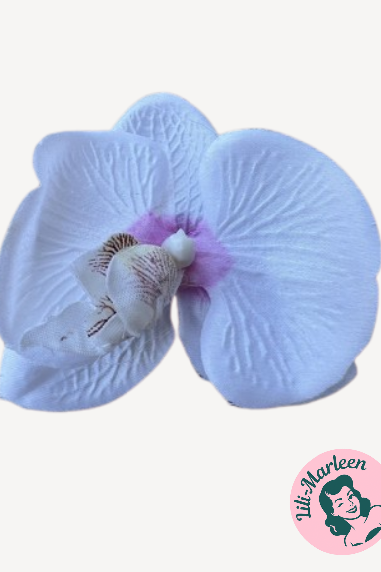 Udover feminint tøj elsker vi alle at pynte os – og denne orkidé hårclips i hvid med lyserød midte er det perfekte tilbehør til at fuldende dit look med lethed og elegance. Den sarte farvekombination giver et romantisk og feminint udtryk, der passer perfekt til både fest, dans, bryllup og hverdagsbrug.