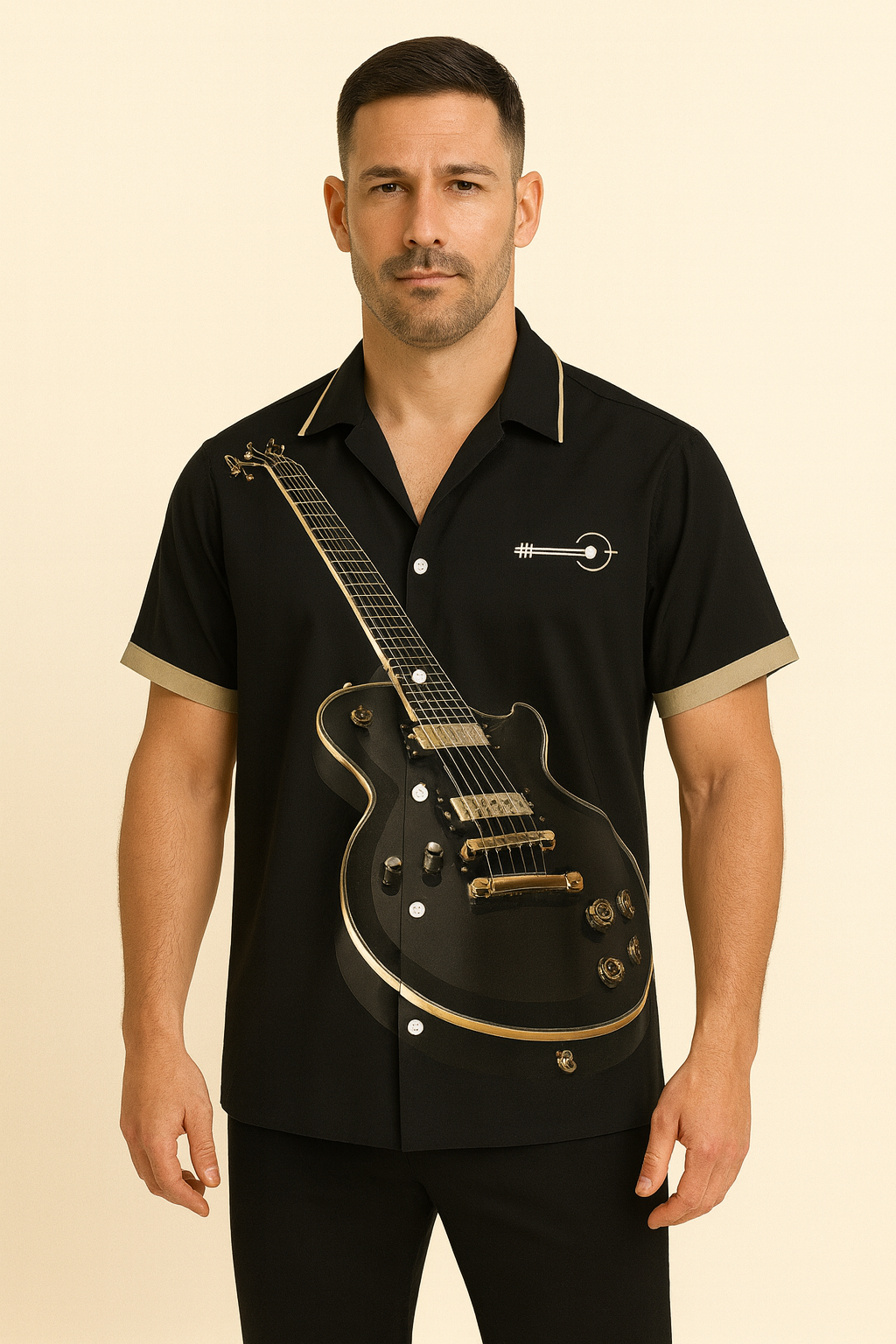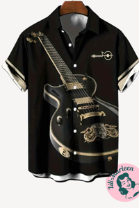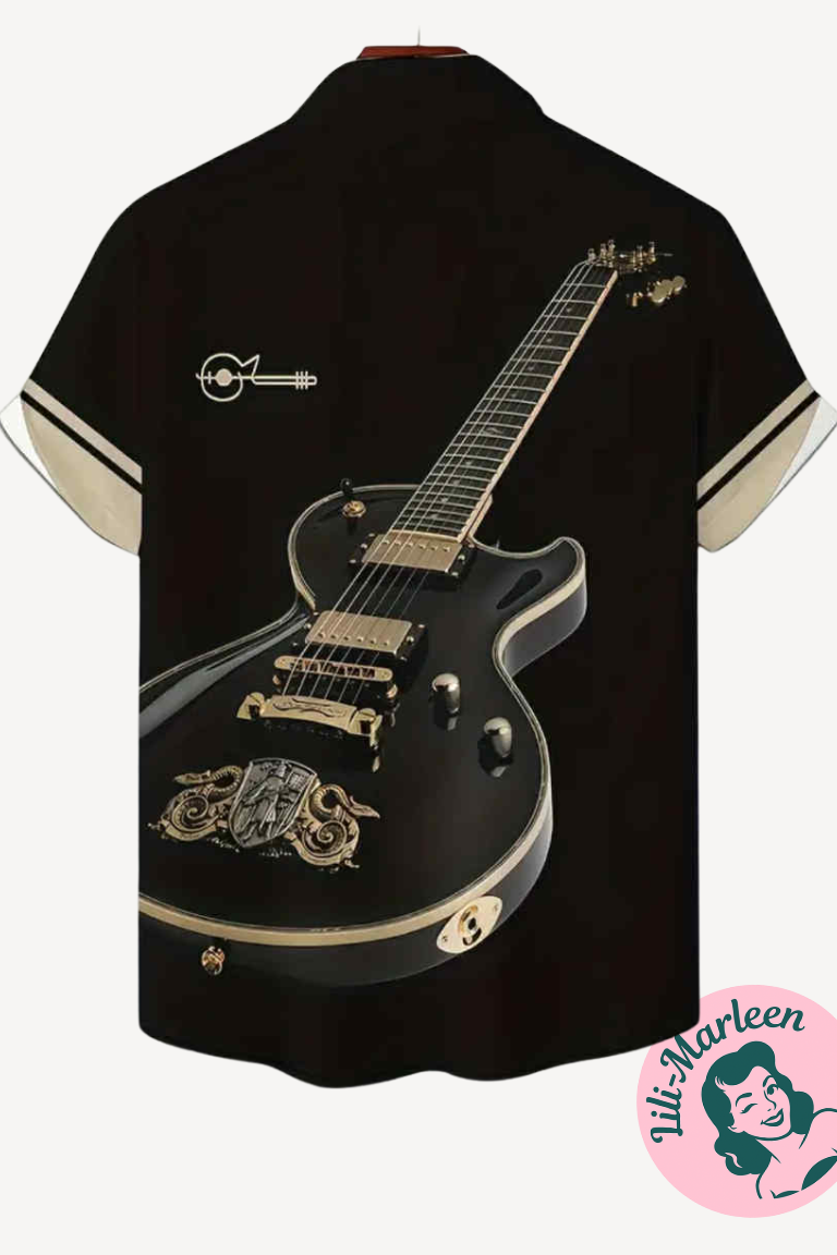 Rock’n’Roll Rebel – Kortærmet Skjorte med Guitarprint