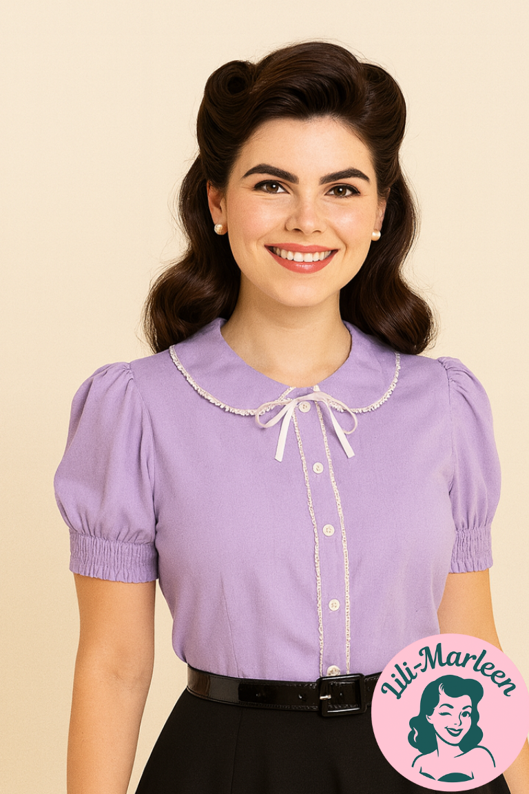 CALLISTE - Romantisk Skjorte i Lyselilla fra Hell Bunny