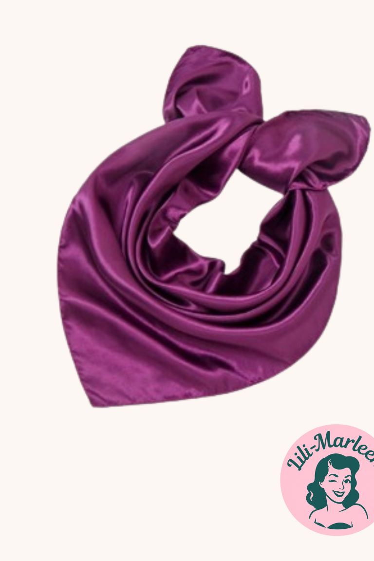 Et glansfuldt satin-tørklæde i en dyb violet nuance, der oser af styrke, luksus og feminin mystik. Perfekt til dig, der elsker accessories, der skiller sig ud med stil, karakter og en snert af royal attitude.