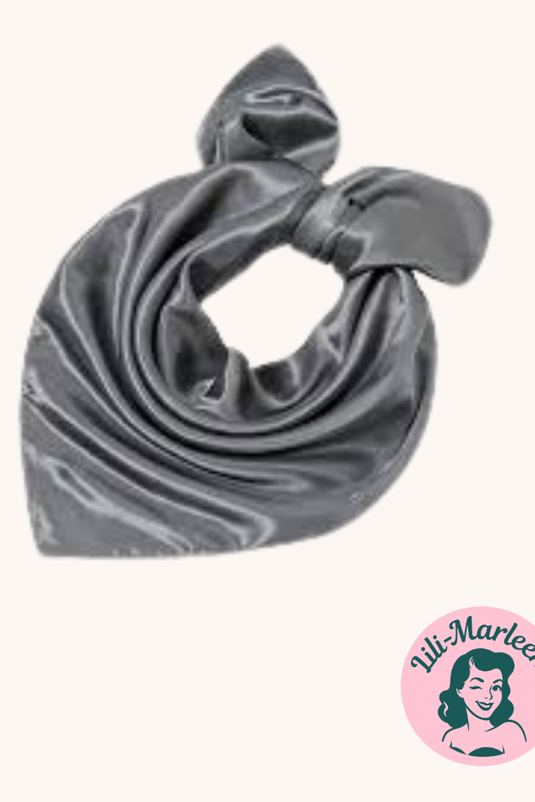 Satin-tørklæde i strålende mørk sølvgrå – energi, mod og retro-charme