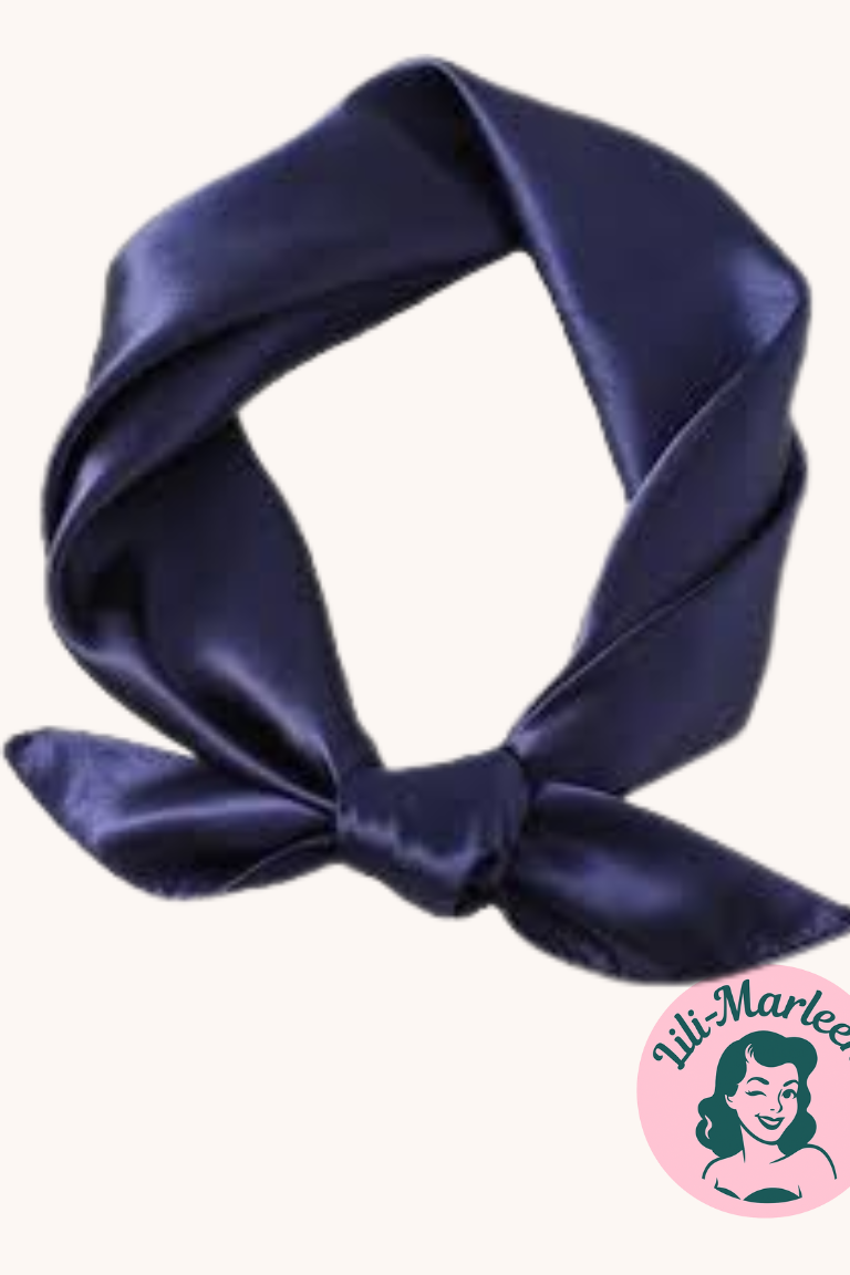 Satin tørklæde til håret eller hals, navyblå – et lille statement med stor effekt