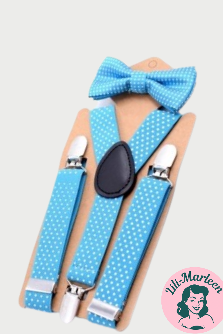 Dette lyseblå børnesæt med butterfly og seler i prikker er den ideelle accessory-pakke til et fuldendt og festligt outfit.