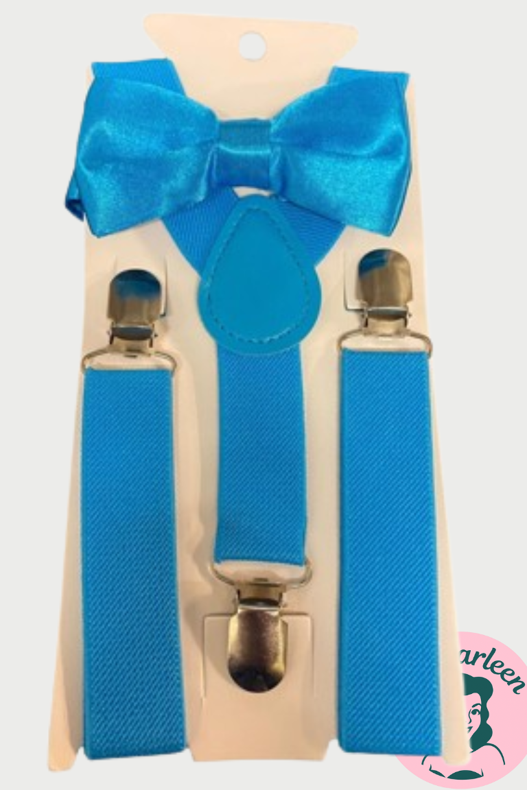 Et frisk og elegant sæt til børn bestående af en lys blå satinbutterfly og matchende seler. Den klare blå farve giver et festligt og stilfuldt udtryk, mens butterflyens satinfinish tilfører et eksklusivt skær. Selerne er justerbare med stærke clips, så pasformen bliver både behagelig og praktisk. Perfekt til bryllupper, konfirmationer og festlige lejligheder.