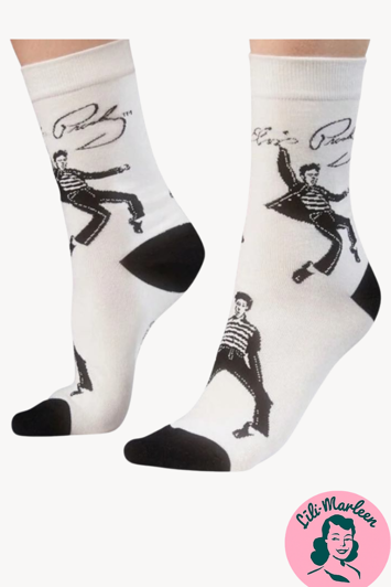 Er du vild med sjove og anderledes sokker? Det er vi også! Disse retroinspirerede sokker med det legendariske Elvis design er perfekt til dig, der elsker nostalgi og gaming. Perfekt til dem, der er født før 1960 eller bare elsker Elvis – eller til dem, der bare elsker klassikere!