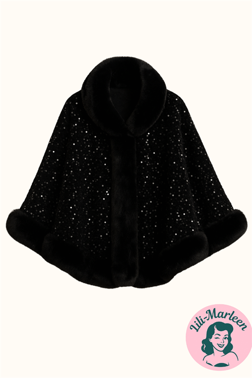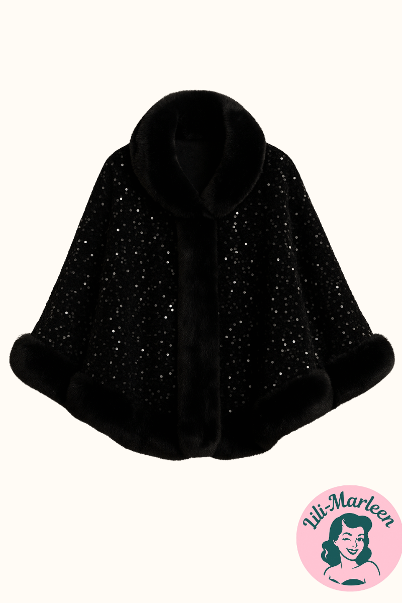 Et elegant slag i sort med glitrende pailletter og blød pelskant. Perfekt til vinterbryllupper, gallafester og særlige anledninger, hvor du ønsker et varmt, luksuriøst og festligt look. Slaget er både praktisk og smukt – det giver ekstra varme uden at gå på kompromis med glamouren.