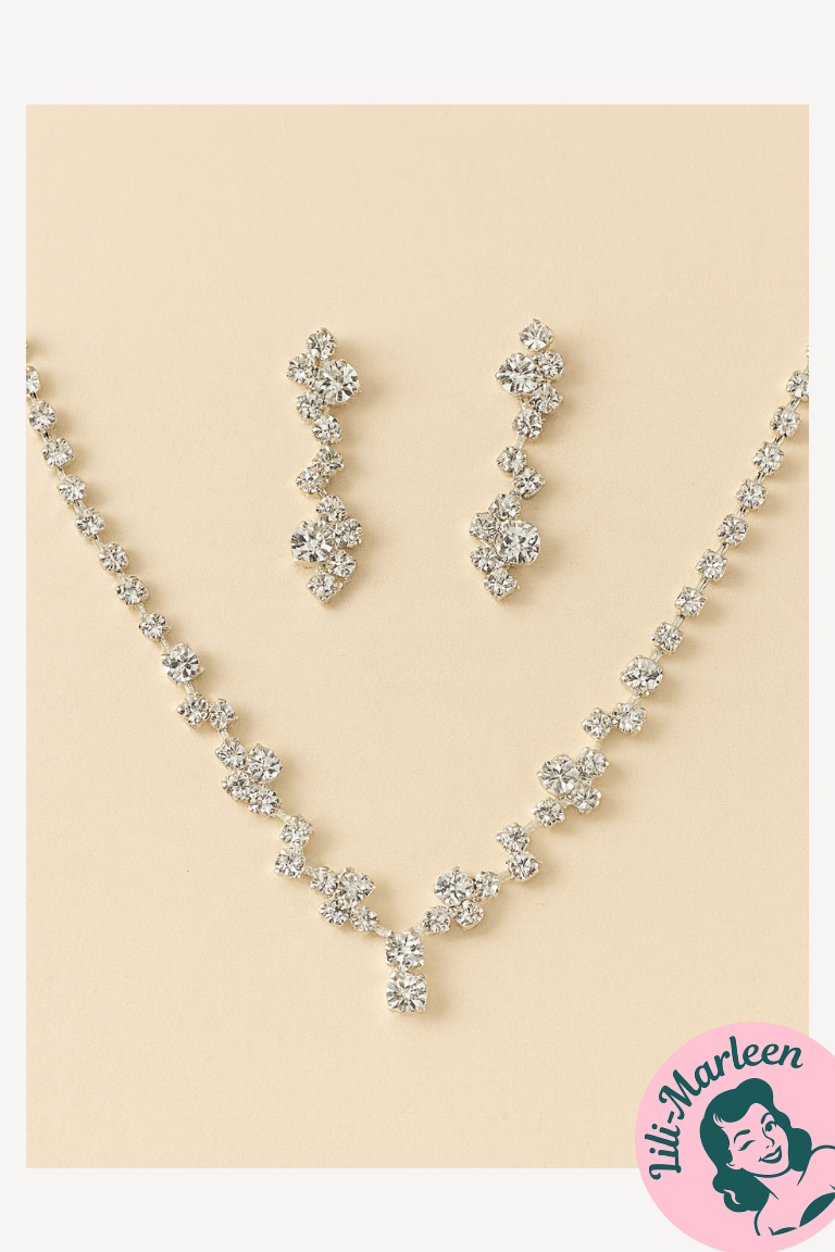 Den fine halskæde og matchende øreringe er udsmykket med funklende krystaller, der fanger lyset ved hvert eneste bevægelse. Det feminine design passer til både en klassisk kjole og et moderne festlook, og gør sættet til et must-have i smykkeskrinet for enhver ung kvinde med sans for stil.