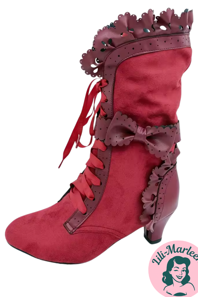 Daniella – Røde Lolita Støvler med Sløjfedetaljer