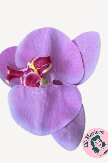 Giv dit hår et blomstrende touch med denne babylyserøde orkidé hårclips – et smukt tilbehør til enhver lejlighed.
