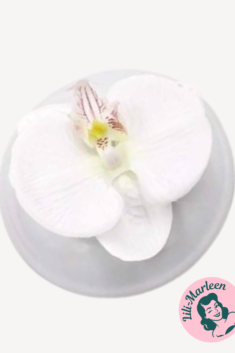 Giv dit hår et blomstrende touch med denne hvide orkidé hårclips – et smukt og klassisk tilbehør til både hverdag og fest.