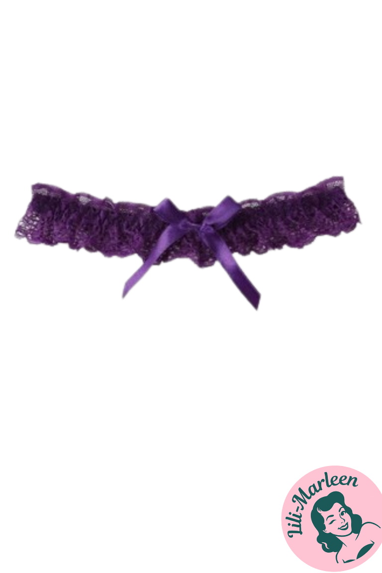 Et klassisk og forførende strømpebånd i dyb lilla blonde med en fin satinsløjfe foran. Perfekt som et lille ekstra touch til bryllup, fest eller bare til at føle sig smuk i hverdagen. Den elastiske pasform gør, at det sidder behageligt og sikkert på låret.