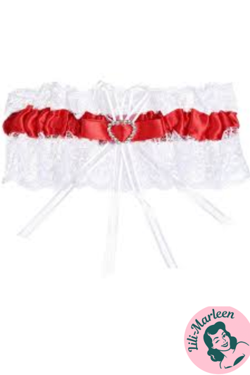Vores Romantisk Elegance strømpebånd kombinerer rødt silkebånd, hvide blonder og et lille hjerte prydet med funklende sten, hvilket skaber et elegant og fortryllende tilbehør. Perfekt til brudekjoler eller festlige begivenheder med rødt tema, dette strømpebånd vil være prikken over i'et på din særlige dag.