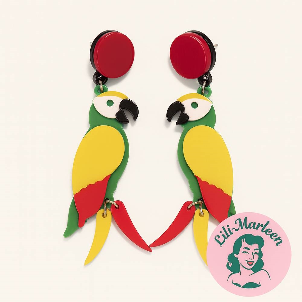 Tropical Parrot – Farverige papegøjeøreringe i retro stil