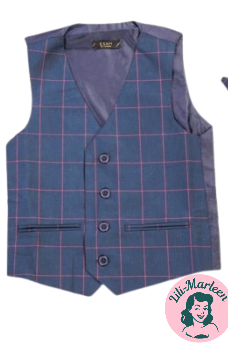 Niels-vestsættet er et stilfuldt og moderne valg til festlige lejligheder. Den blå vest med rødt tern kombineret med matchende slips giver et ungdommeligt og elegant udtryk, der passer perfekt til konfirmation, bryllup, fødselsdag eller andre store begivenheder. Et enkelt, men markant sæt, som gør enhver dreng klar til fest.