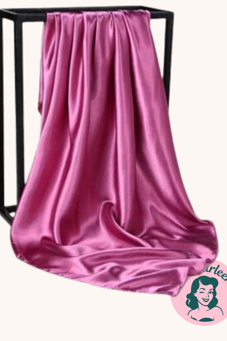 Et farvestærkt tørklæde i blank satin med en intens fuchsia pink tone – en farve, der emmer af selvsikkerhed, livsglæde og feminin styrke. Satinens glatte struktur fanger lyset og giver stoffet en smuk, luksuriøs glans, der gør tørklædet til et sandt statement-piece.