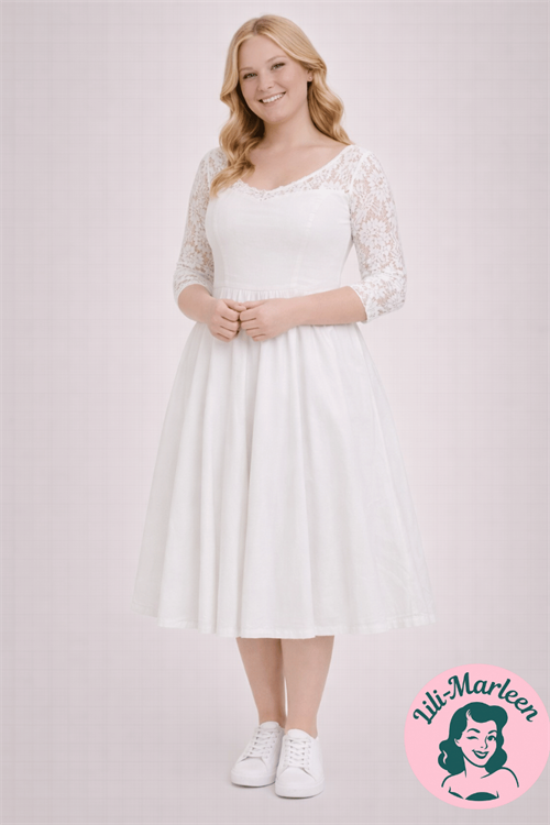 Vintageinspireret hvid kjole: - Naomi: hvid kjole med sød krave og blonder