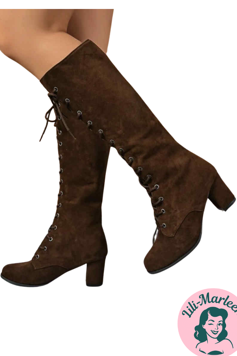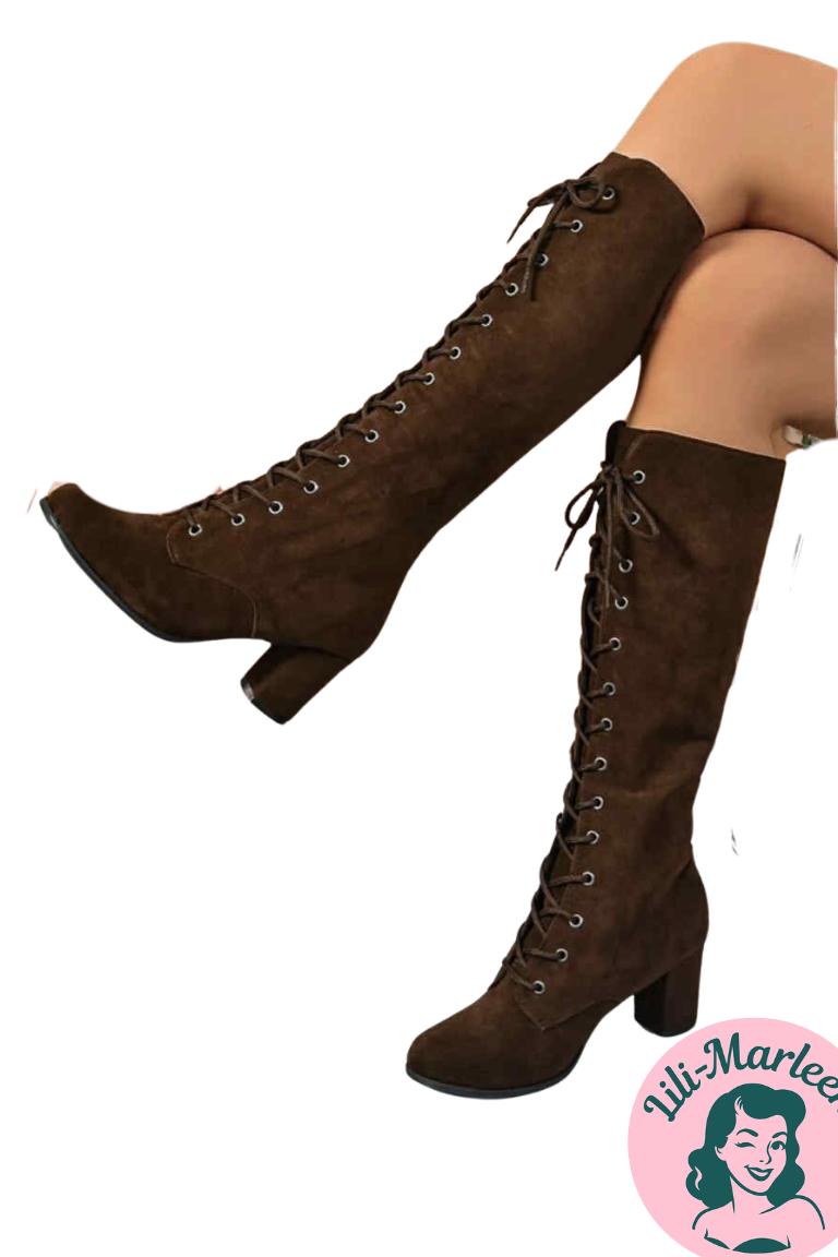 Brown Vintage Lace-Up Boots – Klassiske knæhøje støvler med hæl