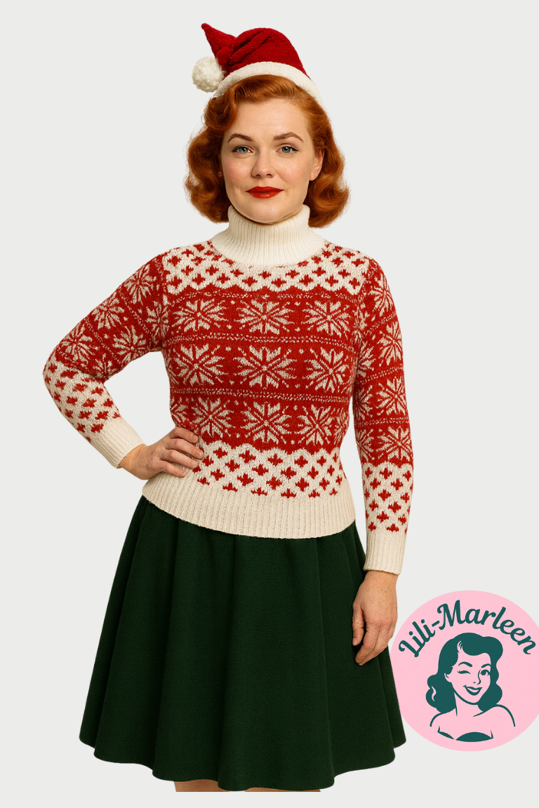 Miss Holly er den ultimative julesweater til dig, der elsker retro-charme og klassisk hygge. Den røde og hvide snefnugstrik kombinerer varme, komfort og masser af julestemning. Med rullekrave, ribkant og blød pasform er den perfekt til både julefrokost, pakkespil eller en kold vinterdag, hvor du vil sprede glæde og stil.